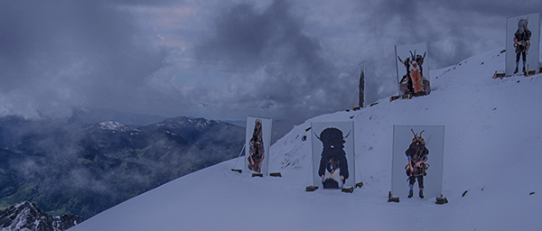 Aber es kam noch besser als pünktlich zur Eröffnung der Vernissage durch Tourismus Direktorin Heidi Thaumiller am frühen Nachmittag zu den Klängen des Alphornbläser Duos der Himmel aufriss und für einen Moment die wilden Gestalten der Klausen in ihren traditionellen, zum Teil über Generationen ererbten und gepflegten Gewändern bunt und plastisch hervortreten ließ.