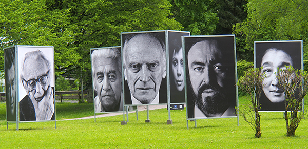 Installation der Musikerporträts von Walter Scheels im Fuggerpark.