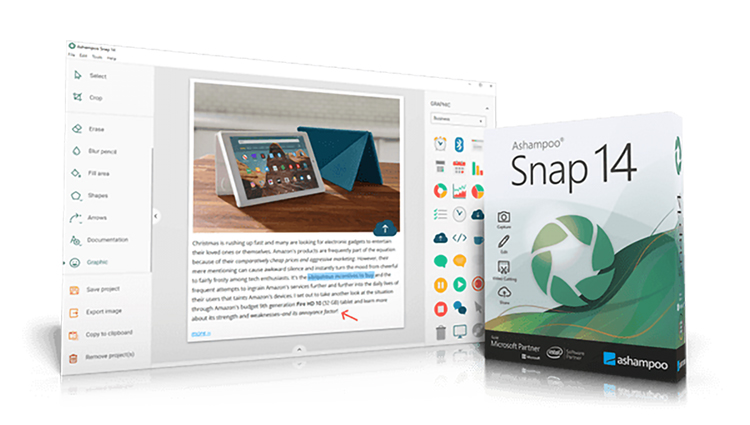 Mit Ashampoo Snap lassen sich Screenshots oder Videos beliebiger Bildschirminhalte schnell und einfach aufnehmen. Was auch immer auf Ihrem Bildschirm zu sehen ist, wird zuverlässig und mit vielen smarten Optionen festgehalten. Im Editor können die Aufnahmen dann bearbeitet, gespeichert und geteilt werden. Zusätzlich bietet die Möglichkeit der grafischen Aufbereitung der Screenshots inklusive automatischer Nummerierung, das…