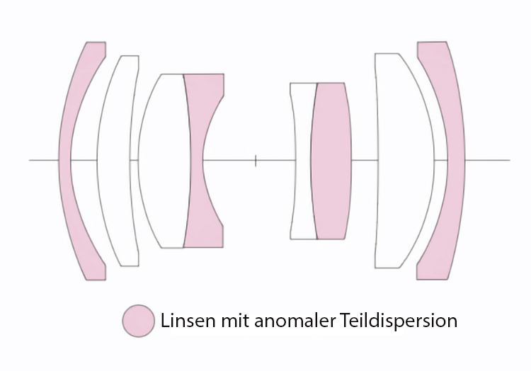 Optischer Aufbau: 8 Linsen in 6 Gruppen