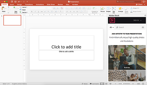 Adobe Stock ist bereits ein integraler Bestandteil der Creative-Cloud-Apps. Jetzt erweitert der Bilderdienst diese Form der Einbindung auch in andere Programme, wie aktuell mit der Schnittstelle für Microsoft Office PowerPoint. Mithilfe dieser kostenlosen Erweiterung können Bilder in Adobe Stock problemlos gesucht, angesehen und lizenziert werden, ohne dass dazu PowerPoint verlassen werden muss. Es ist zudem der einzige Archivdienst mit bildbasierter Bildersuche – Nutzer von PowerPoint können nun also auch mit Bildern statt nur mit Text suchen.