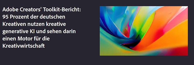 Die Nutzung generativer Künstlicher Intelligenz (KI) hat sich in der deutschen Kreativszene etabliert – besonders im Bereich der Bildproduktion und visuellen Kommunikation. Laut dem aktuellen Creators’ Toolkit Report von Adobe setzen 95 Prozent der befragten Kreativen entsprechende Tools ein. Die Untersuchung zeigt, wie stark KI-Anwendungen Arbeitsweisen in Fotografie, Design und Bewegtbildproduktion prägen.