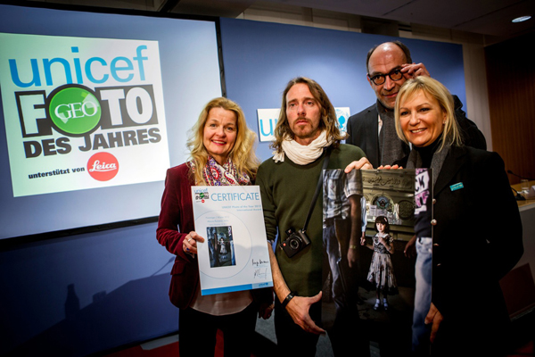 Zum Siegerbild kürte die Jury Romenzis Foto von einem kleinen syrischen Mädchen im Sonntagskleid, das in der blutverschmierten Halle eines Krankenhauses in Aleppo an der Hand seines Vaters auf eine Behandlung wartet und ängstlich einen Mann mit Gewehr betrachtet. Karin Rehn-Kaufmann übergab dem Fotografen als Gewinn eine hochwertige Kamera von Leica. Als weiterer Preis wird dem Fotografen eine Reportage für das Magazin GEO verliehen. Rehn-Kaufmann betonte die Macht der Fotografie und die daraus resultierende Verantwortung eines Herstellers wie der Leica Camera AG weit über das Technologische hinaus: „Wir wollen uns der Herausforderung stellen,die Bedeutung der Fotografie für das öffentliche Bewusstsein und die einsetzenden Veränderungsprozesse weiter zu schärfen. Die Partnerschaft mit ‚UNICEF-Foto des Jahres‘ fügt sich hier nahtlos ein.“