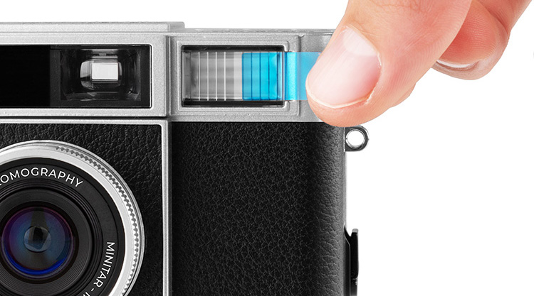 Geschaffen für kreative Experimente auf jedem 35 mm Kleinbildfilm: die Lomo MC-A mit interierten Blitz und Farbfiltern.