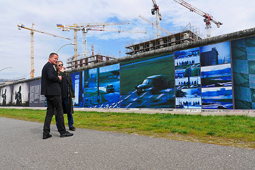 Auf 229 Meter erstreckt sich das großformatige Panorama auf dem längsten erhaltenen Teilabschnitt der Berliner Mauer. Standbilder der Videoarbeiten wurden mit einer eigens entwickelten Technik so stark vergrößert, dass die auf Papierbahnen gedruckten Motive die ganze Höhe der Hinterlandmauer einnehmen.