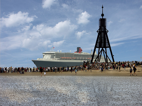 Imposanter Anblick: Das weltweit größte Kreuzfahrtschiff Queen Mary 2 passiert die Kugelbake in Cuxhaven © Druckerei Wöbber, Cuxhavenn immer wieder für neue Überraschungen.