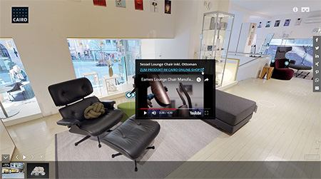 Unter der Internetadresse 3d.cairo.de präsentiert der Cairo Designshop europaweit erstmalig ein fotografisches 3D-Modell eines Einzelhandelsgeschäfts. Verwendet wurde eine 3D-Kamera, die den Raum in hoher Auflösung scannt. Die Aufnahmen mit hohem Kontrastumfang vermitteln das Gefühl eines realen Schlenderns durch das Möbelgeschäft. Viele Produkte sind auf einen Klick mit dem Cairo-Online-Shop verbunden, so dass ein nahtloser Übergang in den Onlinekauf möglich ist und Informati- onen sowie Videos über die Produkte angeboten werden. Links in die wichtigsten Sozialen Netzwerke laden zum Teilen und gemeinsamen virtuellen Einkaufserlebnis ein.