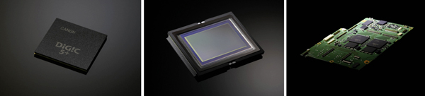 Die aufwändige Elektronik mit 2 DIGIC 5+ Prozessoren, Sensoren und Leiterboards liefert die Voraussetzung für Schnelligkeit und Bildqualität.