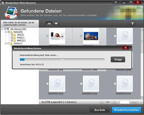 * Wiederherstellung der Fotos und Daten in voller Qualität
