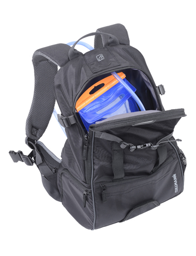 Sport und Fotografie unterwegs lassen sich mit dem Garda SportPack 400 verbinden. Der praktische Fotorucksack erlaubt den schnellen Zugriff auf die Kamera ohne, dass der Rucksack abgesetzt werden muss. Die integrierte Ausgangslasche und die Schlauchbefestigung am Schultergurt ermöglichen gleichzeitig die Verwendung eines Trinksystems. Ein praktisches Fach dient dem Verstauen den Trinksystems oder anderer persönlicher Utensilien. Platz hat das SportPack für eine mittlere DSLR-Kamera mit Zubehör. Ein Drei- oder Einbeinstativ kann am Rucksack befestigt werden. Das Ventilatorsystem sorgt für besten Tragekomfort. Für Schutz bei nassem Wetter gibt es die passgenaue Regenhülle.