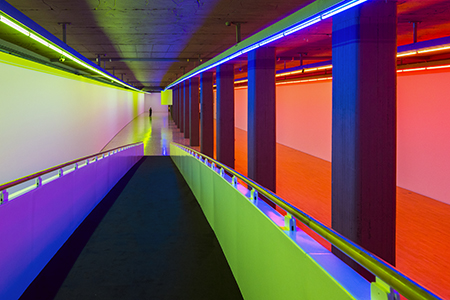 Mit der im Jahr 1994 eröffneten und vom Architekten Uwe Kiessler gestalteten unterirdischen Galerie erschloss sich für das Lenbachhaus eine neue Dimension für Sonderausstellungen. Dan Flavin (1933–1996) entwickelte eigens für die Eröffnungsausstellung die Installation Untitled (for Ksenija), 1994. Das Spätwerk bekräftigt Flavins fortwährende künstlerische Beschäftigung im Spannungsfeld von Lichtkunst und Architektur auf eindrückliche Weise. Seine langjährigen Freunde und Wegbegleiter Heiner Friedrich und Philippa de Ménil schenkten dem Lenbachhaus dieses Werk zum Andenken an ihre Eltern Harald und Erika Friedrich sowie John und Dominique de Ménil. Anlässlich des 80. Geburtstags von Heiner Friedrich wird Untitled (for Ksenija) jetzt ein weiteres Mal im Kunstbau ausgestellt.