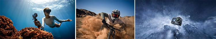 Bis 20 Meter Tiefe ist die Kamera ohne Gehäuse wasserdicht. Mit optionalem Gehäuse sind bis zu 60 Meter möglich. Ein integrierter Farbtemperatursensor optimiert Unterwasserfarben.