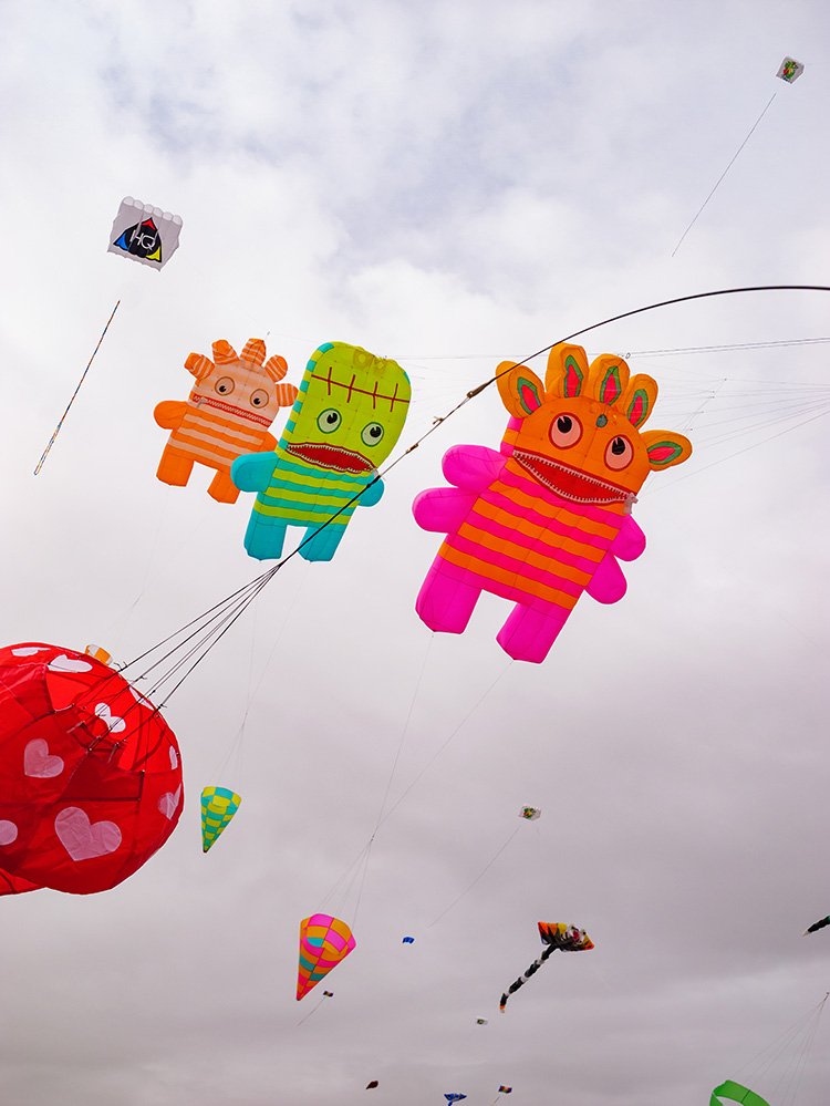 Die Veranstaltung läuft täglich zwischen 10 und 17 Uhr. Damit entstehen unterschiedliche Lichtphasen, von flachem Vormittagslicht bis zu kontrastreicheren Situationen am Nachmittag. Besonders interessant sind Momente, in denen mehrere Drachen gleichzeitig steigen und sich überlagern.