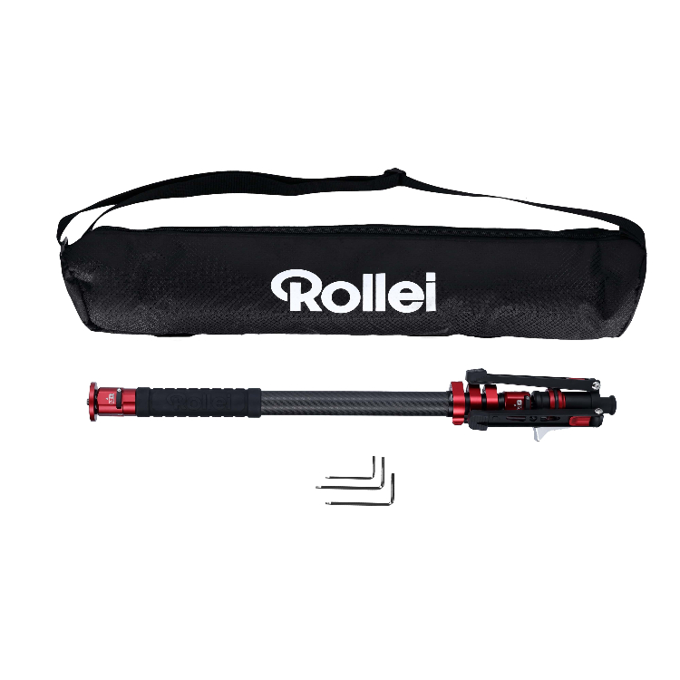 Klein, leicht, schnell und stark: das neue Rollei Traveler Monopod Carbon Einbeinstativ mit abnehmbarem Stativfuss.