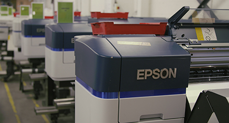 Druckerfarmen sind leicht skalierbar und erreichen auch bei schwankendem Druckaufkommen eine hohe Effizienz. Diese Vorteile werden von einer wachsenden Zahl an Firmen bereits erfolgreich genutzt. Meist bestehen die Druckerfarmen aus mehr als 20 Maschinen der Epson SureColor SC-S-Serie und sind so in der Lage auch hohe Spitzen beim Auftragseingang abzufedern. Die in diesen Maschinen eingesetzte PrecisionCore-Druckkopftechnologie garantiert dabei eine Produktion innerhalb sehr geringer Toleranzen und sichert damit eine verlässlich hohe Qualität.