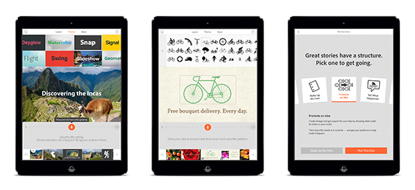 * ‚Story Starters‘ als Mustervorlagen für den Einstieg über die sich die Präsentationen einfach strukturieren lassen