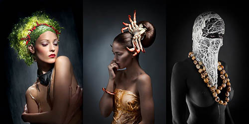 Auf der blanken Haut wunderhübscher Models akribisch arrangiertes Food zur überraschenden Fashion arrangiert – mit diesem innovativ-schrägem Konzept wissen der Spitzenkoch und der Werbefotograf zu überraschen.