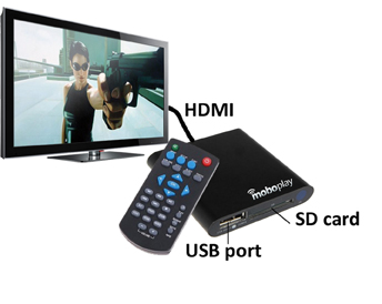 Moboplay ist als kleinster Mediaplayer der Welt die praktische Ergänzung für den Full HD TV-Genuss auch auf älteren TV-Geräten, die die neusten Dateiformate noch nicht abspielen können! Kleiner als eine Kreditkarte ist der Moboplay der kleinste Full HD Media Player der Welt (60mm x 64mm), der Dateien vom Mobostick, USB-Stick oder der SD-Karte abspielt.