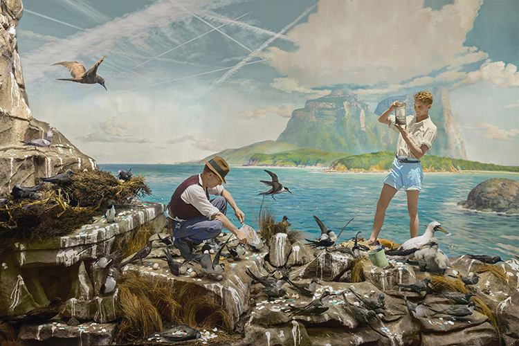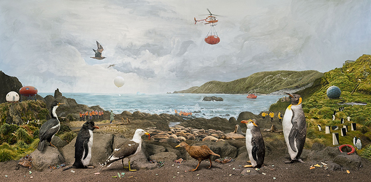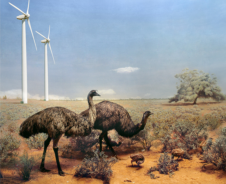 Anne Zahalka hat diese Kompositionen, die ab und zu noch in alten Museen zu finden sind, entstaubt und die ursprünglichen Dioramenbauer – die Wissenschaftler, Illustratoren und Handwerker, die sie hergestellt haben – in die Szenen eingefügt. Sie lässt sich von Naturforschern und fiktiven Künstlern inspirieren und nutzt die Fotografie, um auf die Umwälzungen in den tasmanischen Ökosystemen und die Rolle des Menschen bei der Zerstörung oder Erhaltung dieser Umwelt aufmerksam zu machen. Die Tiere, die sie porträtiert, sind durch die Verstädterung, durch die schädlichen Auswirkungen des Klimas und durch unsere eigene Torheit bedroht.