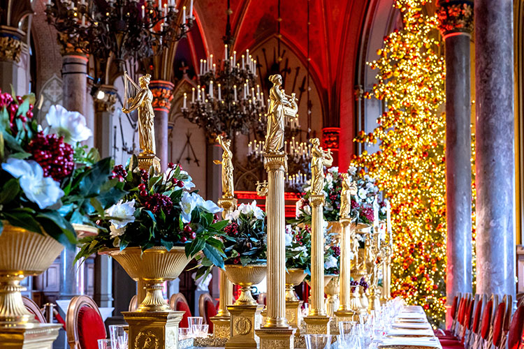 Festlichgedeckte Tafel im Grafensaal beim winterzauber auf der Burg Hohenzollern.