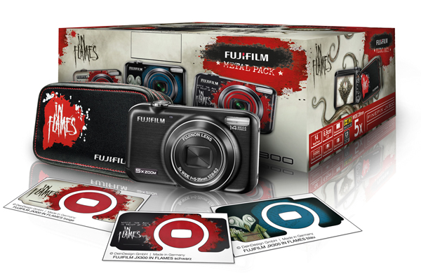 Zum Start der aktuellen Tour der Melodic-Death-Metal-Band „In Flames“ bringt Fujifilm das „In Flames – Metal Pack“ Sondermodell in Schwarz mit Design-Kameratasche mit „In Flames“-Logo und drei unterschiedliche Kamera-Skins zum Aufkleben. Das Design der Tasche, der Kamera-Skins und der Verpackung orientiert sich an dem aktuellen Band-Album „Sounds of a Playground Fading“.