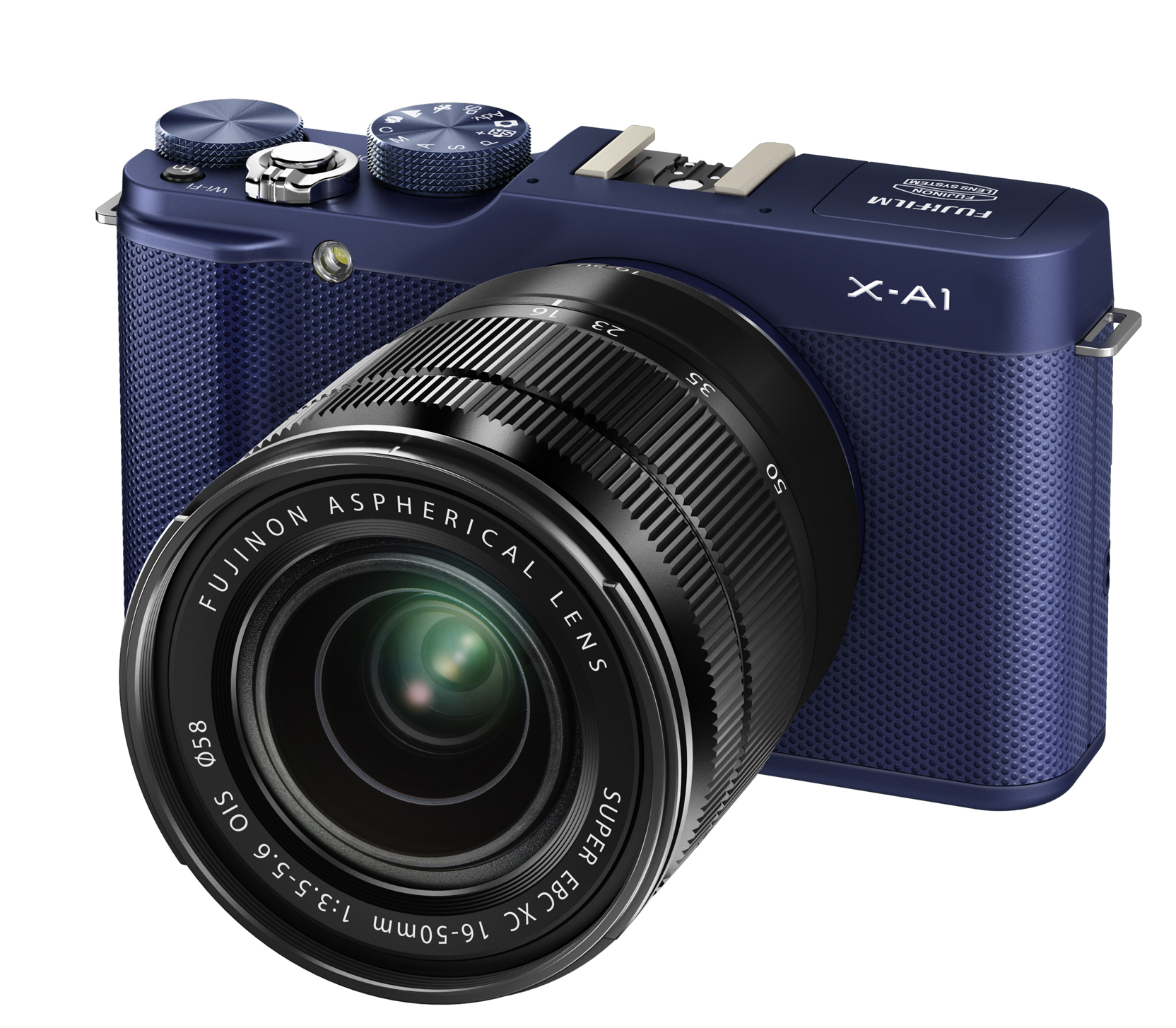 Die Fujifilm X-A1 in Blau.