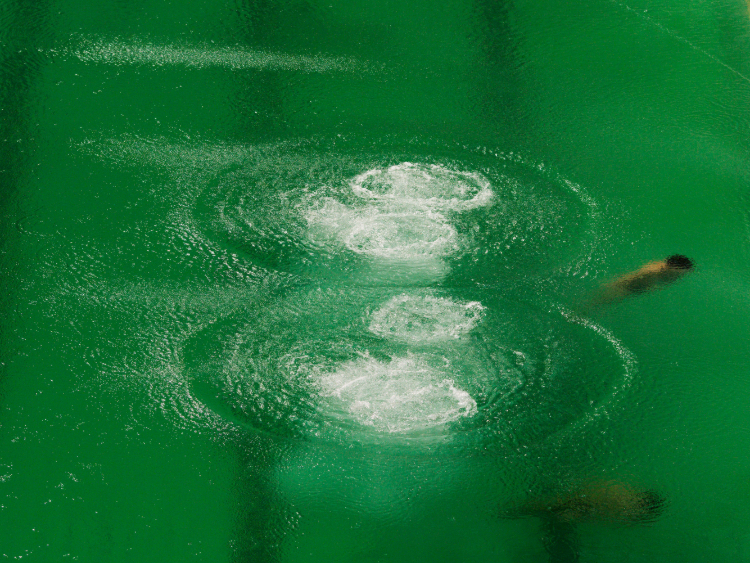 ARENA I zeigt die Olympischen Spiele als durch Bilder legitimiertes Produkt, in dem Athlet:innen, Funktionsträger:innen, Fans – und auch Fotograf:innen – Teil einer vorgegebenen Ordnung werden. Anstatt Medaillenmomente zu reproduzieren, richtet Wells seine Kamera auf Randzonen, architektonische Räume und scheinbar nebensächliche Situationen. Durch ein bewusstes Spiel mit den Zwängen vordefinierter Fotopositionen entstehen Bilder, in denen menschliche Imperfektion und Alltag durch die Maske der Funktion hindurchscheinen und in der nicht die Handlung das Bild definiert, sondern das Bild selbst bestimmt, was als Handlung wahrgenommen wird.