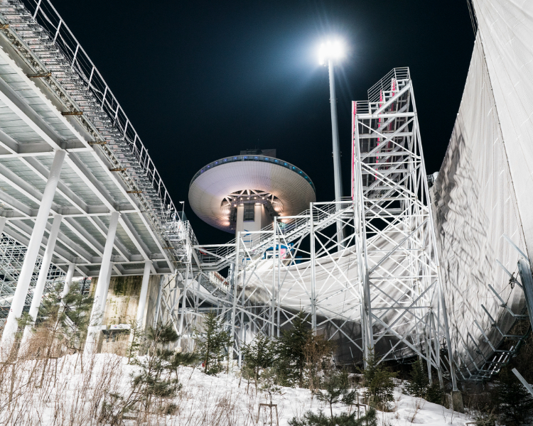 In den Serien ARENA I und ARENA II untersucht Sebastian Wells die Olympischen Spiele als globales Massenspektakel und hinterfragt die medialen, räumlichen und sozialen Mechanismen, die dieses