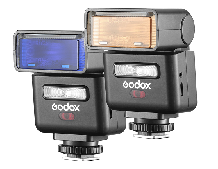Farbige Vorsatzfilter für den Reflektor des Godox iT32 Aufsteckblitzgeräts ermöglichen individuelle Beleuchtungseffekte.