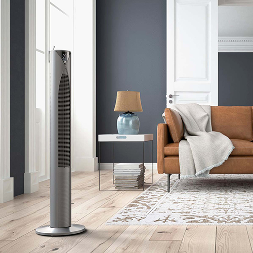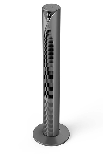So lässt sich der Turmventilator bei einer Außentemperatur von 30 Grad auf höchster Stufe betreiben und beim Einschalten des Fernsehers automatisch in die niedrigste und damit leiseste Stufe wechseln. Mit den Abmessungen 18,6 x 18,6 x 119,1 Zentimetern findet das schlanke Gerät beinahe überall einen Platz.