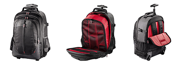 Rucksack und Trolley sind gepolstert und bieten eine variable Inneneinteilung des Kamerafachs, das sich beim Trolley bei Bedarf auch komplett herausgenommen werden kann. Zudem ist der Trolley mit einem separaten Fach für ein Notebook oder den Tablet-PC ausgestattet. Beide besitzen eine Stativhalterung, einen weich gepolsterten Tragegriff und einen längenverstellbaren, bequemen Schultergurt. Diverse Seiten- und Vordertaschen bieten zudem ausreichend Platz für Unterlagen und Zubehör.
