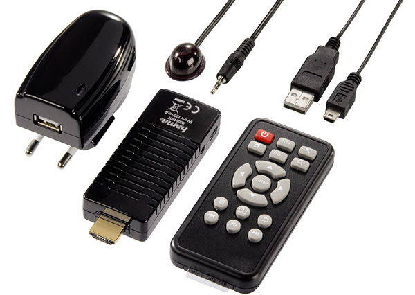 Der neue Internet TV-Stick von hama wird einfach in die HDMI-Buchse des Fernsehers eingesteckt und ermöglicht grenzenloses Surfen, Chatten und Mailen auf dem TV-Bildschirm. Das Android 4.0-Betriebssystem unterstützt tausende Apps, so dass sich jeder Nutzer seinen Stick mit allen benötigten Anwendungen ausstatten kann. Ein Cortex-A9-Prozessor sorgt für starke Videoperformance zur Wiedergabe von qualitativ hochwertigem Videomaterial in FullHD. Der Lieblingsfilm kommt entweder über den SD-Kartenslot, via USB-Anschluss von einem Speicherstick oder einer externen Festplatte oder über Samba, WLAN, UPnP oder DLNA auf den Stick. Für alle, deren Fernseher sehr nah an der Wand angebracht wurde, liegt dem Stick ein HDMI-Verlängerungskabel bei, so dass das Wechseln von Speicherstick oder -Karte komfortabel von der Vorderseite des Fernsehers erledigt werden kann.