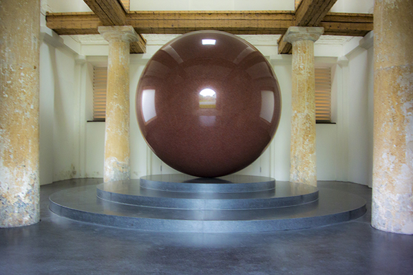 Die Nikon 1 J3 kommt mit wenig Licht aus. Die Aufnahme der Plastik von Walter de Maria „Large Red Sphere‘ im Türkentor in München, entstand mit dem Standardzoom 1Nikkor 10 – 30 mm 1:3,5-5,6 VR