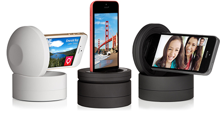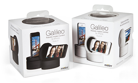Das neue 360°-iPhone-Dock ist das Ergebnis eines erfolgreichen Kickstarter-Projektes der kalifornischen Firma Motrr. Dabei handelt es sich um ein manuell oder per Software steuerbares 360°-Dock, das wahlweise ein iPhone oder einen iPod Touch automatisch von einer beliebigen Location aus in jede gewünschte Richtung schwenkt. Das Galileo ist als Pin- oder Bluetooth-Version erhältlich und ermöglicht das Erstellen sphärischer Panoramabilder für virtuelle, interaktive 360°Bilderlebnisse sowie Videochats einer neuen Generation. Ebenso sind einfache Überwachungsanwendungen möglich.