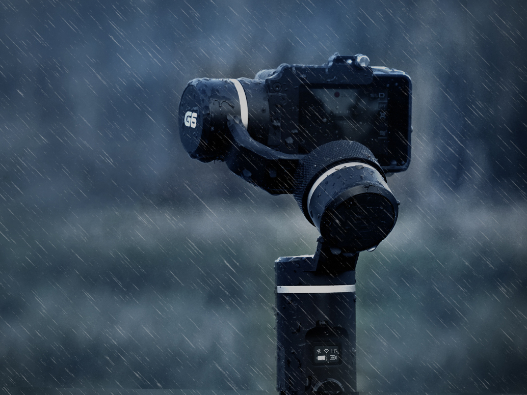 Das Gimbal ist mit einem übersichtlichen OLED-Display oberhalb der zentralen Bedieneinheit ausgestattet, das einen schnellen Infoüberblick, wie den Akkustatus oder den derzeitigen Aufnahmemodus, bietet. Der austauschbare Akku des Geräts hält bis zu 12 Stunden durch.Zudem kann damit die montierte Kamera über das G6 aufgeladen werden, das als Powerbank fungiert. Der um 35° nach unten geneigte Rollachsenmotor sorgt dafür, dass dieser dem Benutzer nicht den Blick auf das Display der Kamera versperrt und ihm so keine wichtige Szene entgeht.