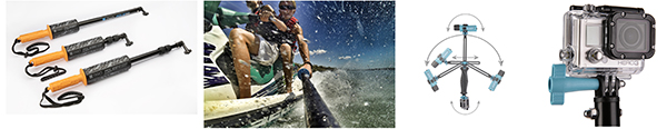 Mit den POV Kamera Poles ist man mittendrin in der Action. Die stabilen und verstellbaren GoPro® Kamerahalterungen verleihen den Aufnahmen eine ganz besondere Perspektive. Die Poles lassen sich auf bis zu 137 Zentimeter ausziehen und sind zum Filmen und Fotografieren für nahezu alle Sportarten, wie Surfen, Skaten, Skifahren oder Wakeboarding geeignet. Sie werden aus leichtem Aluminium gefertigt und sind in sieben unterschiedlichen Längen erhältlich. Sie eignen sich für drei verschiedene Einsatzmöglichkeiten: als Griff, als Armerweiterung oder als Stativ. Durch den biegsamen Schwenkarm eignen sie sich außerdem für das einfache Aufnehmen von Selfies. Der rutschfeste Griff liegt bequem in der Hand und gibt sicheren Halt. In seinem Inneren versteckt sich ein leichtes Ministativ. Die brandneuen Poles mit der Zusatzbezeichnung „Floating“sind mit einem schwimmfähigen Schaumstoff ummantelt, der das Untergehen im Wasser verhindert. An Land hingegen lassen sich alle Poles bei Nichtgebrauch aufgrund der kompakten Größe einfach im Rucksack verstauen.