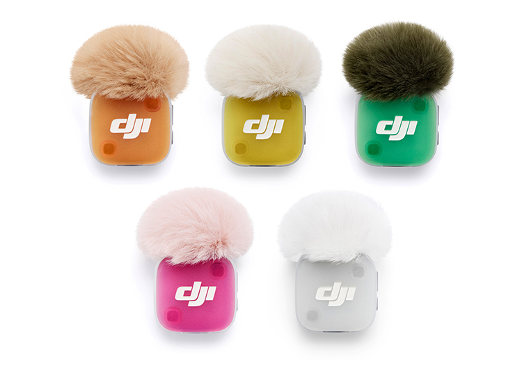 Das Mic Mini 2 von DJI verfügt über farbige Frontabdeckungen und dazu passende Windschutzaufsätze zur Rauschunterdrückung.