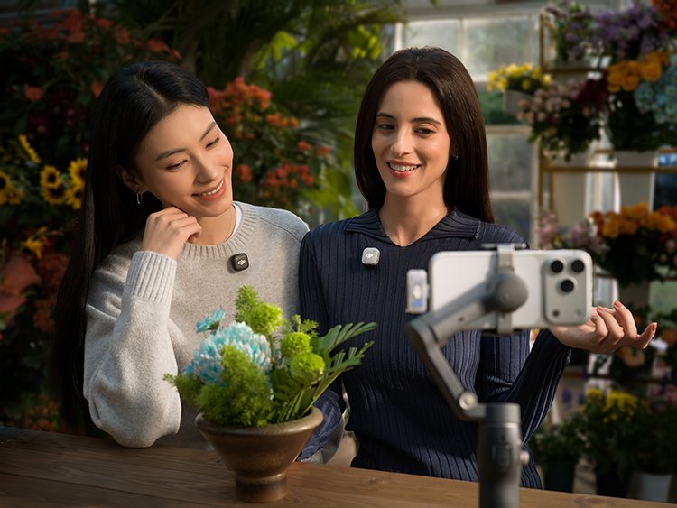Der Sender des Systems wiegt nur etwa 11 Gramm und lässt sich über einen drehbaren Magnetclip flexibel ausrichten. Die Audioaufzeichnung erfolgt mit 48 kHz und 24 Bit. Drei Klangvoreinstellungen stehen zur Verfügung, um unterschiedliche Aufnahmesituationen abzudecken. Ergänzt wird dies durch eine zweistufige Geräuschunterdrückung, die sowohl für ruhige Innenräume als auch für lautere Umgebungen ausgelegt ist. Automatische Pegelbegrenzung, eine fünfstufige Verstärkungsregelung und Dual-Track-Aufnahmen über die DJI Mimo App erweitern die Steuerungsmöglichkeiten.