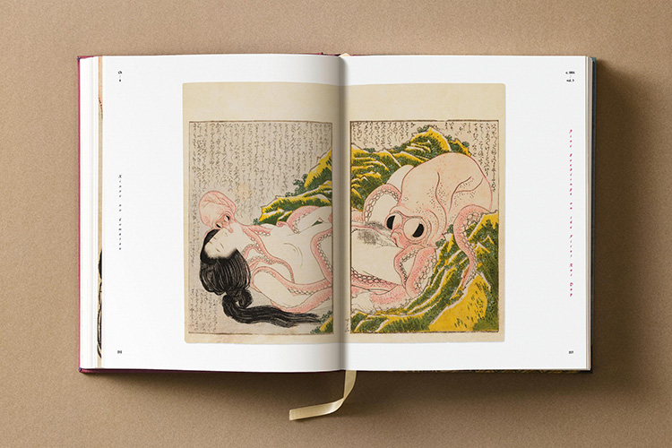 Die shunga Bilder des im Taschen Verlag erschienenen Prachtbandes sind weniger bekannt. Die aufwendige Edition der jetzt in einem Schuber veröffentlichten, erotischen shunga Werke entstanden mehrheitlich bereits lange vor der Großen Welle. Damals wandte der große Meister seine Hand (und seinen Blick) weitaus intimeren Szenen zu: Ob Dienstmädchen oder Ehefrauen, Kurtisanen, Liebhaber oder neugierige Zaungäste – und ja, zwei berüchtigt-verspielte Kraken: Hokusais shunga (wörtlich „Frühlingsbilder“) sind frech, fröhlich und oft zum Brüllen komisch.