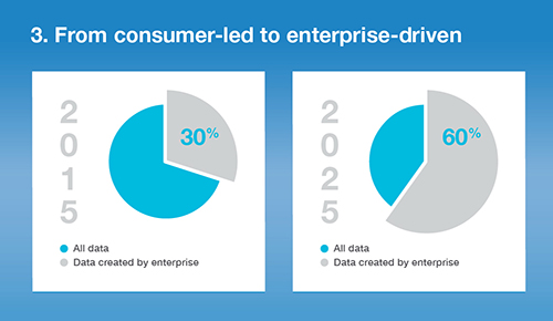 Die Studie lässt den Schluss zu, dass jedes Unternehmen von den wesentlichen Trends hinter dem Datenwachstum betroffen ist. Zu den wichtigsten Treibern der Verlagerung von verbraucher- zu unternehmensgetriebenen Daten gehören: