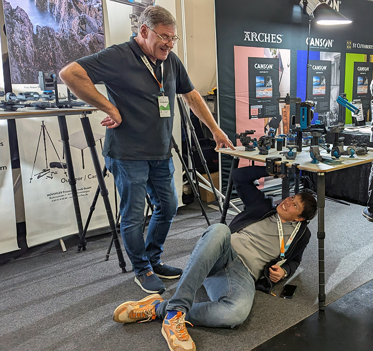 Basisarbeit vor dem ansturm: Novoflex-Chef Michael Hiesinger legt persönlich letzte Hand am Messestend an.