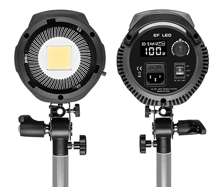 Die Lichtleistung lässt sich mit einem Drehregler auf der Rückseite des Geräts in Fünf-Prozent- oder in Zehn-Watt-Schritten einstellen. Ein übersichtliches LC-Display gibt Aufschluss über alle Einstellungen. Zudem gibt es zwei optional erhältliche Funkfernsteuerungen. Für den Anschluss von Reflektor, Beauty Dish oder Softbox ist das EF-150D mit dem Bowens S-type Bajonett ausgerüstet.