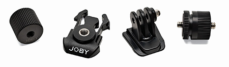 Mit dem neuen Joby Action-Adapter Kit lassen sich Halterungen wie beispielsweise Joby GorillaPod Arm™, Locking Arm™, Action Clamp™ und Suction Cup™ flexibel mit einer Action Cam kombinieren, wodurch neue Perspektiven und Blickwinkel für actiongeladene Videoclips möglich werden. Die vier Adapter des Action Adapter Kit™ (der Tripod Mount for GoPro®, Female to Female Adapter, Quick Release Buckle und Male to Male Adapter) ermöglichen mit ihren universellen ¼-20 Zoll Edelstahlgewinden eine einfache Kombination von Action Cams mit unterschiedlichen Zubehörprodukten.