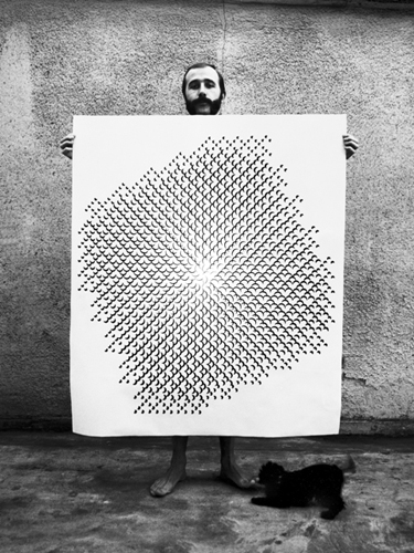 Ursel Jäger: Gottfried Jäger präsentiert seine Lochblendenstruktur 3.8.14 F 2.5, 1968 Kameraphotographie