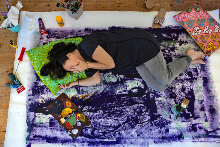 Kornelias wahre Leidenschaft ist die Malerei. So gut es geht versucht sie trotz allem, ihre Kunst zu leben. An guten Tagen kann sie im Sitzen malen, an den meisten Tagen muss sie sich auf die Leinwand legen und kann nur sehr langsam arbei-ten. Bei diesen Versuchen kommen ihr oft die Tränen, weil sie merkt, wie ihr Körper sie im Stich lässt.