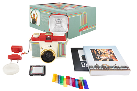 Die Diana F+ zieht die Welt der Lomographie seit 10 Jahren in ihren Bann. Mit ihrem neuen, großen Auftritt in Form einer besonderen Geburtstagsedition versprüht die Kamera mit ihren bunten Linien das Flair der Swinging Sixties. Sie überrascht seit zehn Jahren die Welt mit ihren träumerischen, schillernden Bildern. Ihre zahlreichen kreativen Möglichkeiten haben sie schnell zu einem Liebling der analogen Szene werden lassen. Mit der Diana F+ 10 Years of Diana Edition hüllt Lomography den Klassiker in ein neues Kleid. Die Kamera motiviert mit ihren Möglichkeiten der Mehrfachbelichtung, zu Lochkameraeffekten oder Panoramaaufnahmen zu kreativen Experimenten. Dazu bietet sie zwei Belichtungszeiten, eine Auslösesperre und ein Stativgewinde. Es gibt austauschbare Objektivvorsätze Blitze, Rückteile für verschiedene Formate und viele weitere, separat erhältliche Accessoires.