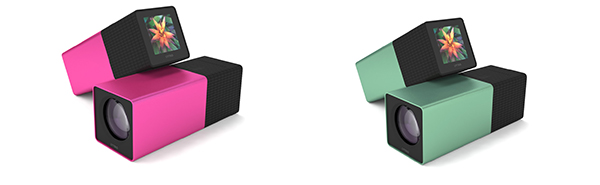 Die Lytro Lichtfeldkamera in den neuen Farben Moxie Pink und Seaglass.