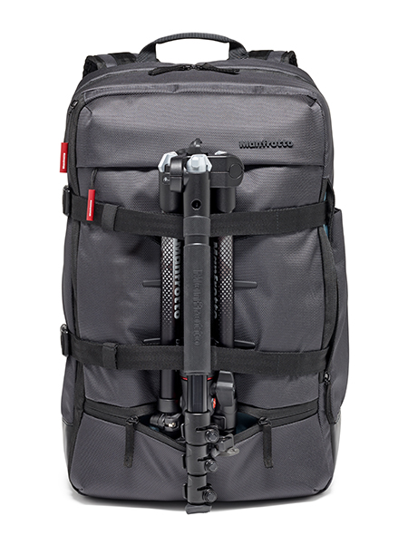 Manfrotto Mover 50: Der 50 x 32 x 20 cm große Rucksack fasst mittlere bis große DSLRs mit angesetztem 70/200 mm f 2.8 Objektiv oder spiegellose Systemkameras mit angesetztem Standard-Zoom-Objektiv sowie bis zu fünf weitere Objektive und ein Blitzgerät. Platz findet darüber hinaus ein 15,6″ Laptop und ein iPad Pro 9,7 Zoll. Zugriff auf das Equipment ist wahlweise von hinten oder von oben möglich. Der gepolsterte, entnehmbare Einsatz ist individuell einteilbar.. Ein rückseitig mittels Haken und Klick-Schnallen fixierbares Gurtsystem sichert unterschiedlichste Objekte – vom Stativ bis hin zu Drohnen oder Alltagsgegenständen wie Fahrradhelme oder Skateboards. Der Rucksack kostet etwa 160 Euro.