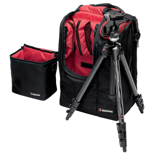 Dazu hat Manfrotto erstmals einen Rucksack entwickelt. Im Gegensatz zu anderen Lösungen, bei denen das Stativ außen am Rucksack befestigt wird, besitzt das Manfrotto Modell ein integriertes Stativfach, in dem das M-Y Carbon sicher verstaut wird. Der Rucksack bietet darüber hinaus ausreichend Platz für Kamera, Foto-Zubehör, einen 17“ Laptop und weitere persönliche Gegenstände. Eine herausnehmbare Tasche bietet Platz eine Kamera sowie ein bis zwei Objektive. Sie kann mit Hilfe des mitgelieferten Umhängegurtes auch separat getragen werden. Mit herausgenommener Kameratasche verwandelt sich der Fotorucksack in einen alltagstauglichen Freizeitrucksack. Der Rucksack kann sowohl auf dem Rücken mit Schultergut oder am Handgriff getragen werden.