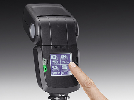 Das Gerät verfügt über ein schwenkbares Reflektorsystem, das zudem eine herausziehbare Reflektorkarte sowie eine Streuscheibe beinhaltet. Neben der neu integrierten Masterfunktion stehen auch die Slave-Funktion und die Servo-Funktion zur Verfügung. Damit lässt sich das neue Blitzgerät je nach Kameramodell in unterschiedlichen Betriebsarten einsetzen. Bei der Servo-Blitzauslösung ist keine Masterfunktion der Kamera notwendig, um den Blitz als weitere kreative Lichtquelle im Raum zu verwenden. Bei der Master / Slave-Funktion kommt der kameraspezifische drahtlose TTL-Remote Betrieb der jeweiligen Modelle zum Einsatz.